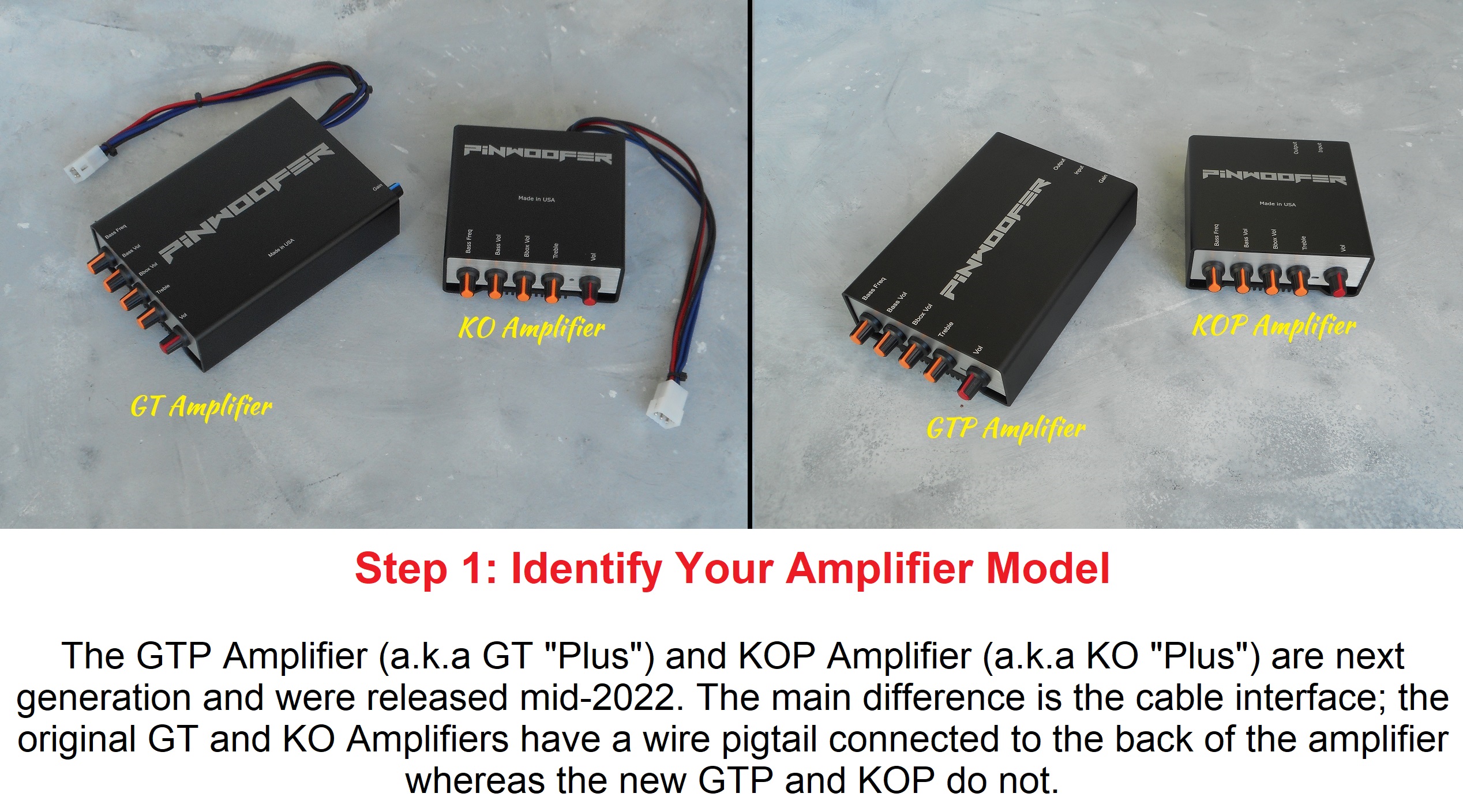 The output of the PinWoofer GT, GTP and KOP amplifiers have what's called "Pro" or "Studio" level which is of a higher voltage drive compared to consumer electronics. (The KO amplifier does not have an output.)